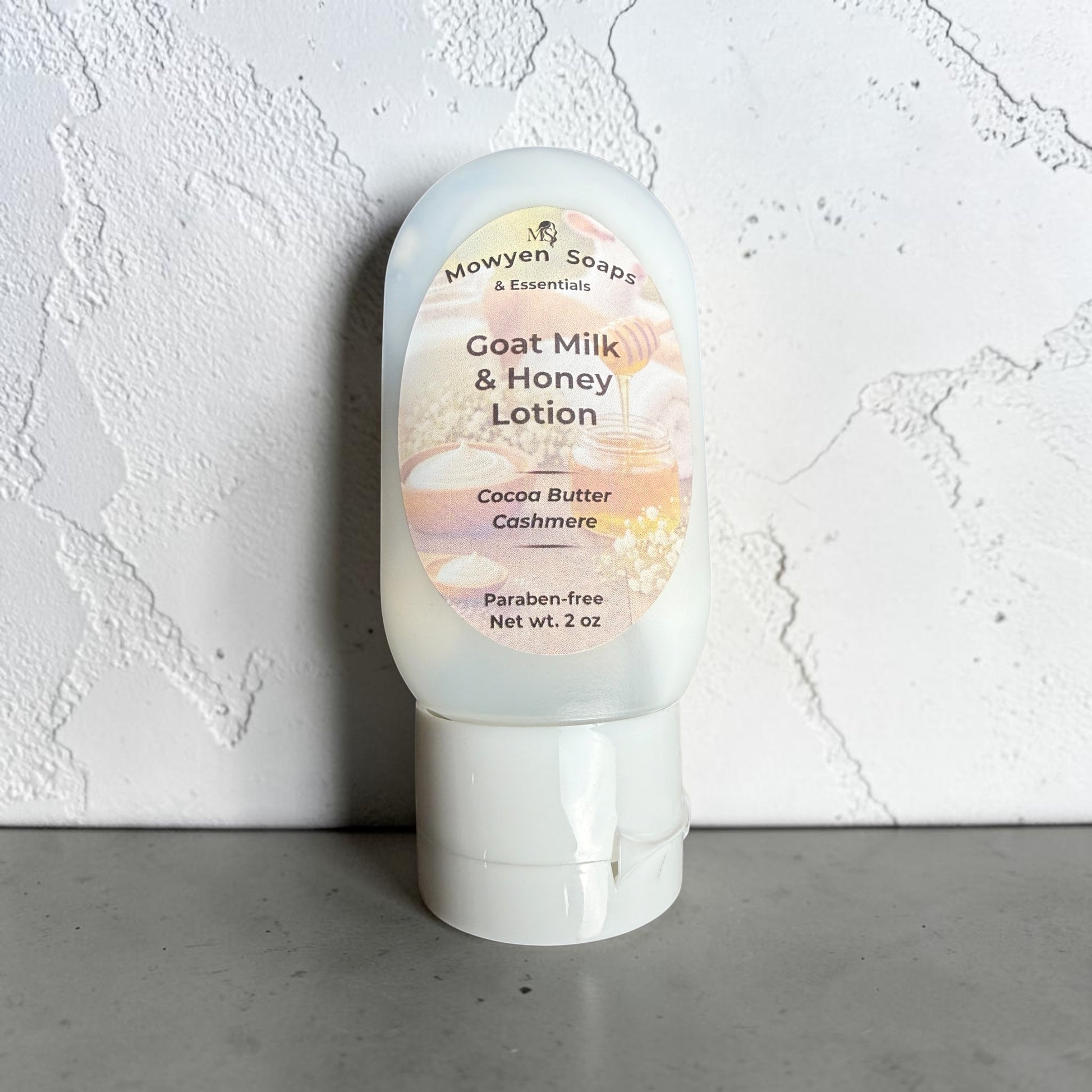 2 oz bottle Ingredients: Water, Emulsifying Wax, Conditioning Alcohols, Shea Butter, Sunflower Oil, Lightweight Moisturizers, Plant-Based Fatty Acids, Aloe Vera, Goat Milk Extract, Honey, Preservativ